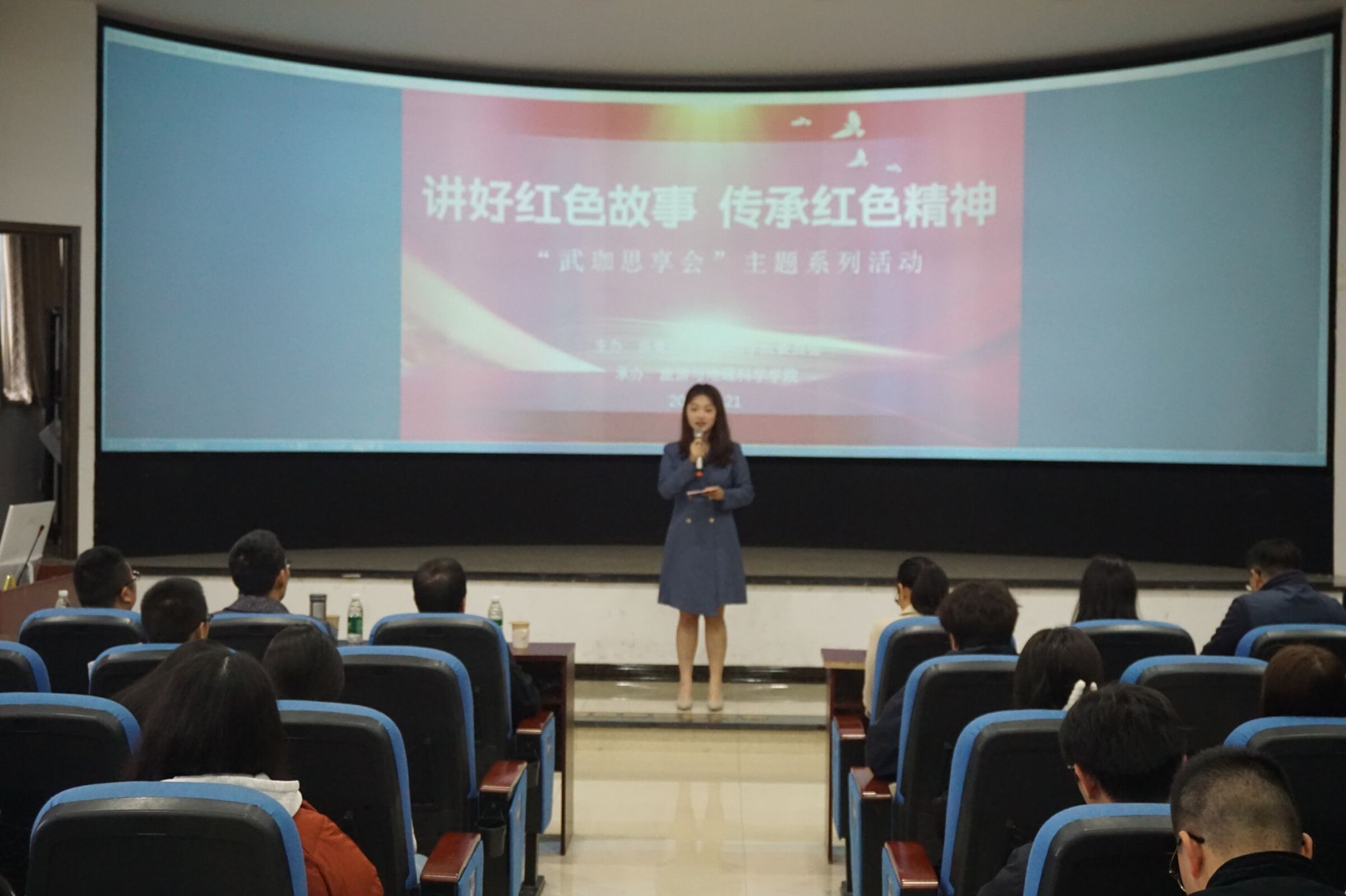 本网讯(文/杨光、图/赵茂秋)11月21日,由校团委主办、旅游与地理科学学院承办的“武珈思享会”主题系列活动之“讲好红色故事 传承红色精神”活动于旅院楼3D教室成功举行。苍溪红军渡西武当山景区事务中心主任张波带领两位金牌讲解员王丹彤和周欣进行讲解分享。校团委书记李东,旅游与地理科学学院党委书记徐秀云,党委副书记、院长郭剑英等领导及学院师生参与本次活动。