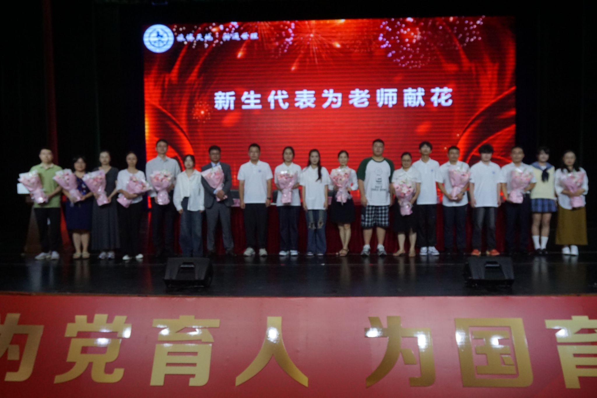 高年级学生代表、第十八届“挑战杯”四川省大学生课外学术科技作品竞赛主赛道二等奖获得者王李驹分享了个人成长历程与感悟。张永川宣读了2025级新生班主任和代班名单。新生代表、2025级地理科学2班朱婧作了发言。新生们向老师们敬献鲜花,感恩老师们平日里的辛勤耕耘。