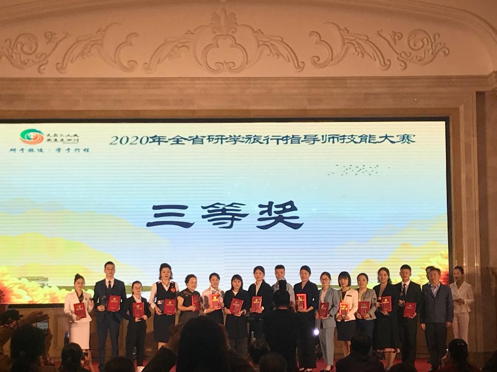 今年8月1日至9月11日期间,市(州)选拔赛选拔出52个名额参加全省决赛,我院吴薇老师代表乐山市入选到决赛。10月15日,吴薇老师以优异的成绩进入总决赛。10月16日,吴薇老师在总决赛中荣获三等奖,并被授予“2020四川省优秀研学旅行指导师”称号。