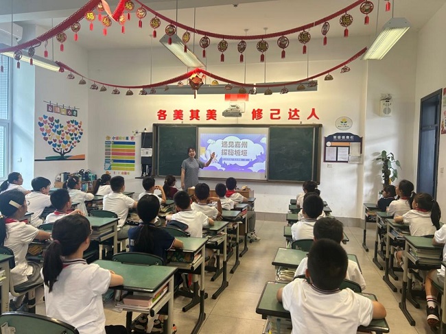 本网讯(图、文/吴薇)6月8日,旅游与地理科学学院教师、四川世界遗产普及基地成员吴薇到乐山嘉祥外国语小学开展了主题为“遇见嘉州 探秘城垣”的科普讲座。